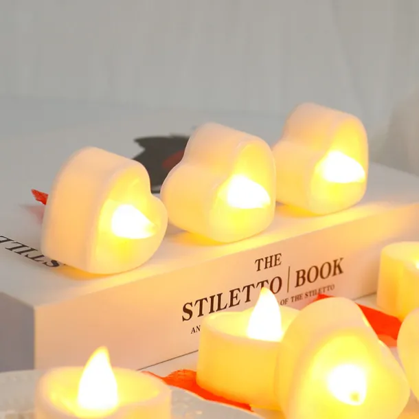 LED Electronic Candle Light Heart Shaped Valentine’s Day Proposal Party Romantic Decoration Props Christmas Halloween Holiday Party Home Decoration 12/24pcs