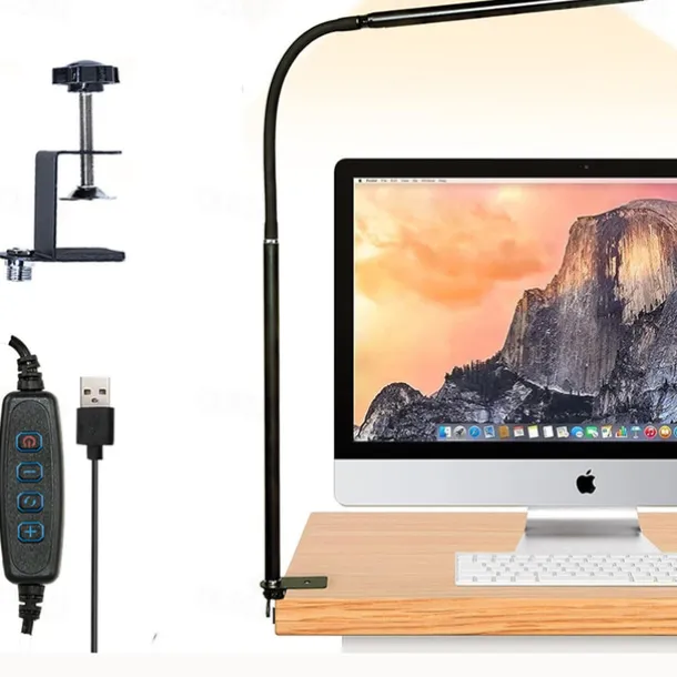 LED Eye Protection Desk Lamp USB Powered for Learning & Reading – Full Spectrum, Low Blue Light with Folding Clip and Dimmable 1PC
