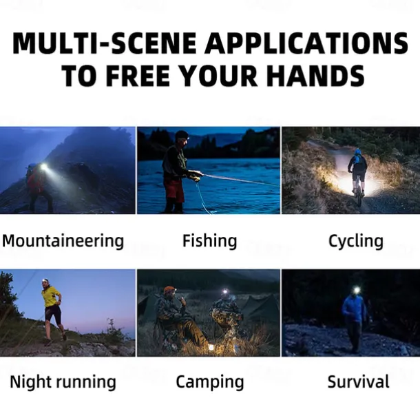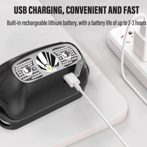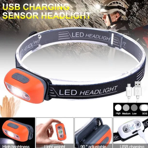 LED Headlamp Rechargeable Induction Sensor Waterproof Headlight Flashlight Ultra-light Lamp Body Used for Cycling Camping Etc. Shustar