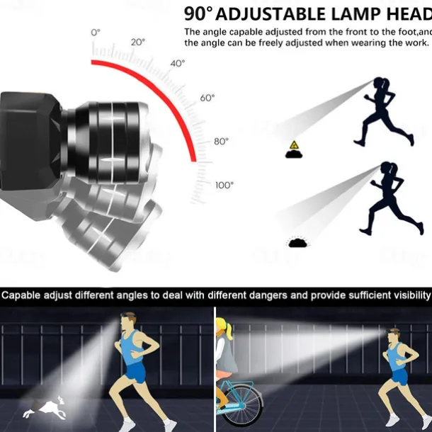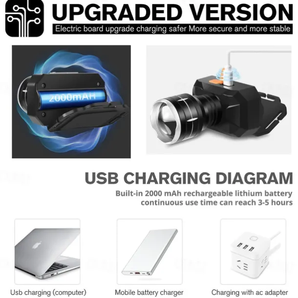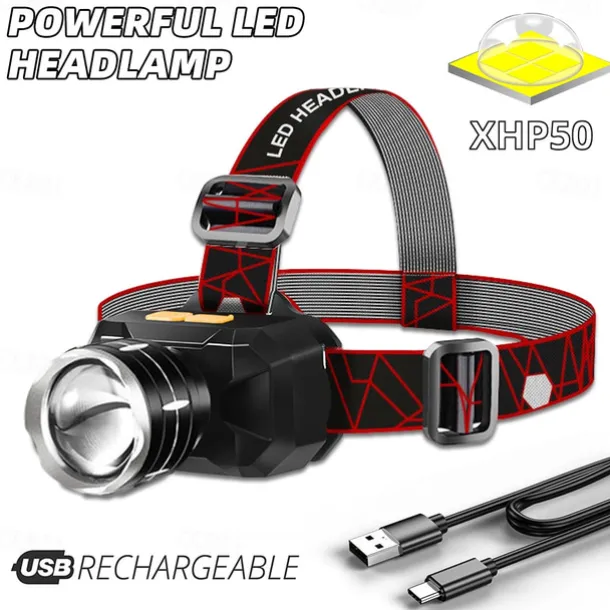 LED Headlamp Waterproof Outdoor Camping Fishing Lantern Torch USB Rechargeable XHP50 18650 LIB Headlight 3 Modes Zoom Head Flashlight