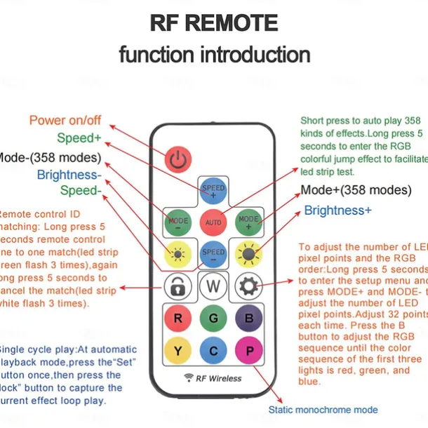 LED Beads Quantity: 120-600, Light Color: RGBIC (Addressable Dream Color), Power Supply: Plug, Type: Neon Strip Lights, Style: LED Strip Light, Features: Party, Holiday, Waterproof, Individual Addressable, Quantity: 1 set, Wattage (W): 72, Voltage (V): 12, Length: 1m, 2m, 3m, 4m, 5m, Mode: RF Remote Control, Button Control, CRI: >70, LED Type: Flexible Neon, Batteries Included: Yes, IP Rating: IP65, Width: 12mm, Control Mode: Remote Control, Length Range: < 5m (16.4ft), What’s in the box: 1Set Mounting Bracket, 1 X 12V 3A Power Supply,