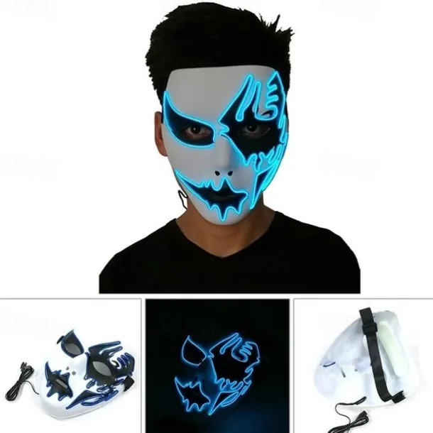 LED Light Ghost Mask EL Mask for Halloween Scary Cosplay Masquerade Dancing Party Luminous Mask