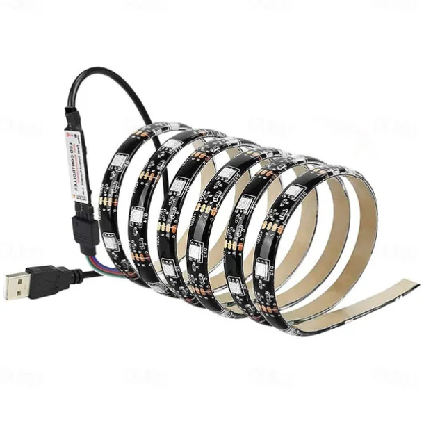 LED Beads Quantity: 60, Light Color: RGB, Power Supply: USB, Type: RGB Strip Lights, Features: Self-adhesive, Decorative, Cuttable, Waterproof, USB, Tiktok LED Strip Lights, Quantity: 1PC, Wattage (W): 1, Voltage (V): 5, Initial Lumens (lm): 120, Length: 2m, Mode: IR Remote Control, LED Type: 5050 SMD, Length Range: < 5m (16.4ft), Width: 10mm, Control Mode: Remote Control, What’s in the box: 1 24Keys Remote Controller,