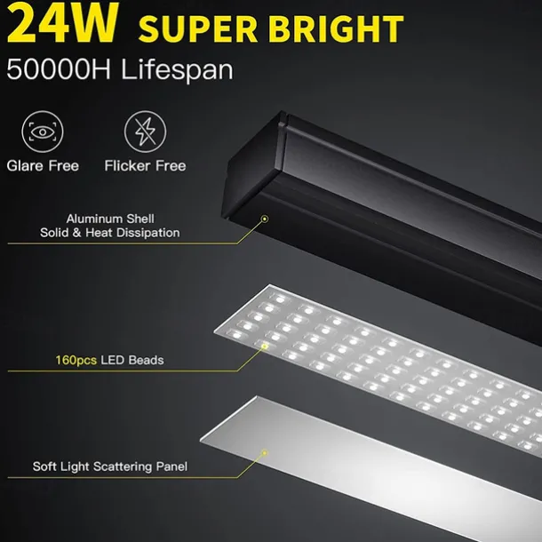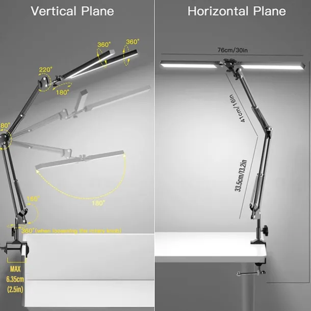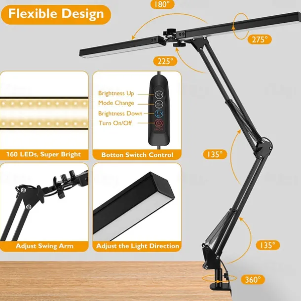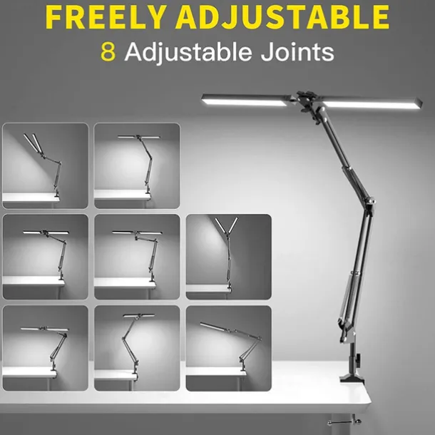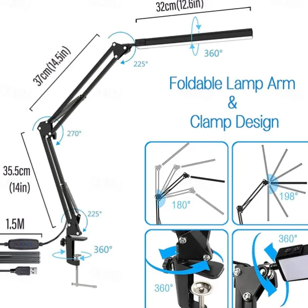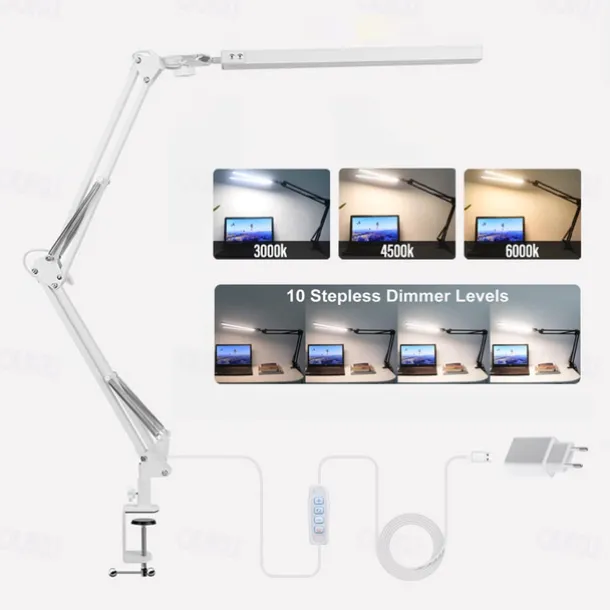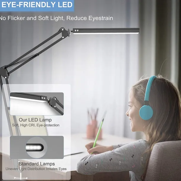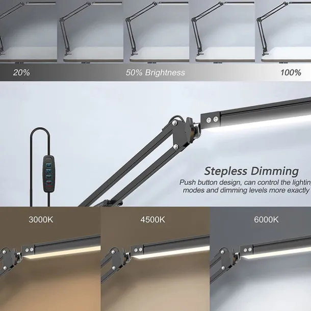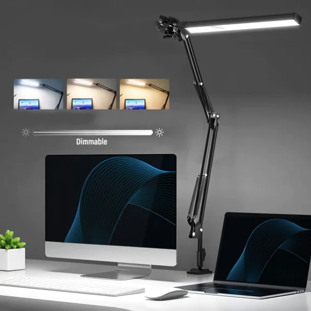 LED Reading Desk Lamp 24W Folding Swing Arm Desk Lamp with Clamp Dimmable Suitable for Workbench Home Eye Care Office Study Shustar