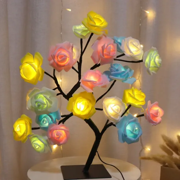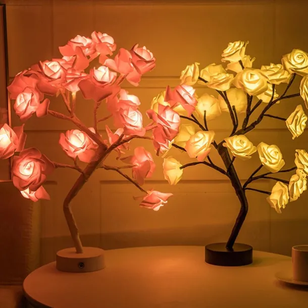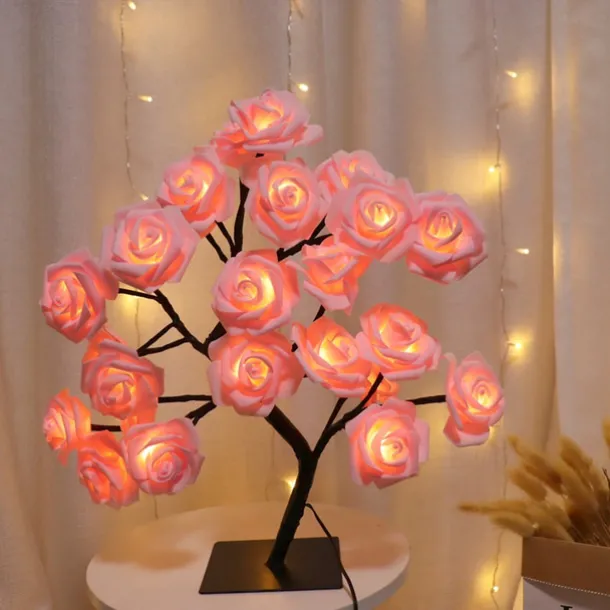 LED Rose Flower Table Lamp Valentine Tree Fairy Lights 24LED Rose Flower Tree Lights Valentine’s Day USB Table Lamp Fairy Maple Leaf Night Light Home Party Christmas Wedding Bedroom Decoration Gift