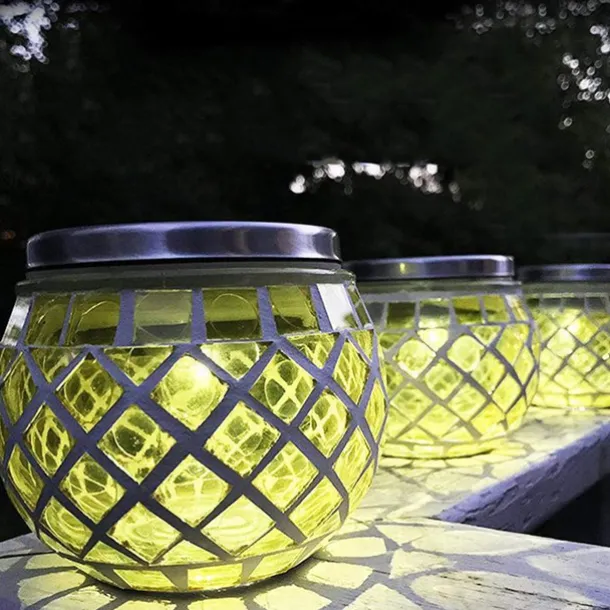 LED Solar Mosaic Glass Lamp Solar Ball Lamp Hollow Out Lamp Garden Lawn Decoration Outdoor Waterproof Landscape Lamp