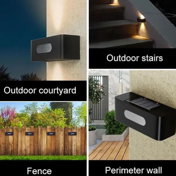 LED Solar Outdoor Wall Lights Step Lights Waterproof Up and Down Security Wall Lamps Energy Saving Step Lights LED Lighting for Garden Step Stair Yard Pathway Backyard Decoration Solar Fence Lights (Warm/White)