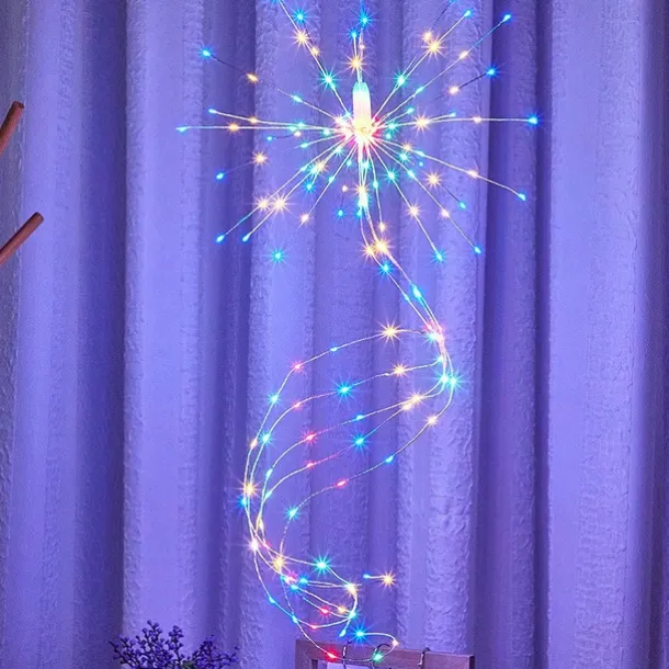 LED Beads Quantity: 200, Light Color: Warm White, White, Multi Color, Power Supply: USB, AA Batteries Powered, Type: Christmas Starburst Lights, String Lights, Style: Firework / Starburst Lights, New Year’s, Christmas, Features: USB, Christmas Wedding Decoration, Holiday, Decorative, Party, Quantity: 1 set, Wattage (W): 3, Voltage (V): AA Batteries Powered, USB Powered, Initial Lumens (lm): 100, Length: 0.75m, Mode: 8 Modes: (1.Combination 2.Wave 3.Sequential 4.Glow 5.Flash 6.Slow Fade 7.Twinkle 8.Continuous), CRI: >80, Batteries Included: Yes, IP Rating: IP44, Control Mode: Remote Control, Suitable Rooms: Bedroom, Living Room, Shape: Wire, Occasion: Wedding, Indoor, Window / Curtain / Wall, What’s in the box: 1 13Keys Remote Controller,