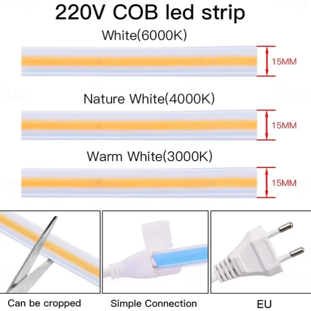 LED Beads Quantity: 320, Light Color: White, Netual White, Warm White, Power Supply: Plug, Type: Flexible LED Light Strips, Style: LED Strip Light, Features: Patio, Waterproof, Outdoor, Creative, Voltage (V): 220-240, Length: 3m, 20m, 15m, 10m, 7m, 5m, LED Type: COB, Control Mode: Mode Switching,