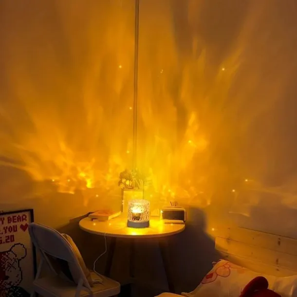 LED Water Ripple Ambient Night Light USB Rechargeable Rotating Projection RGB Crystal Table Lamp With Remote Control Dimmable Color Change For The Bedroom Bedside Playroom Children’s Gifts