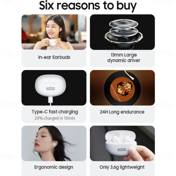 Lenovo LP5 True Wireless Headphones TWS Earbuds In Ear Bluetooth5.0 Stereo with Charging Box Built-in Mic for Apple Samsung Huawei Xiaomi MI Yoga Everyday Use Traveling Mobile Phone
