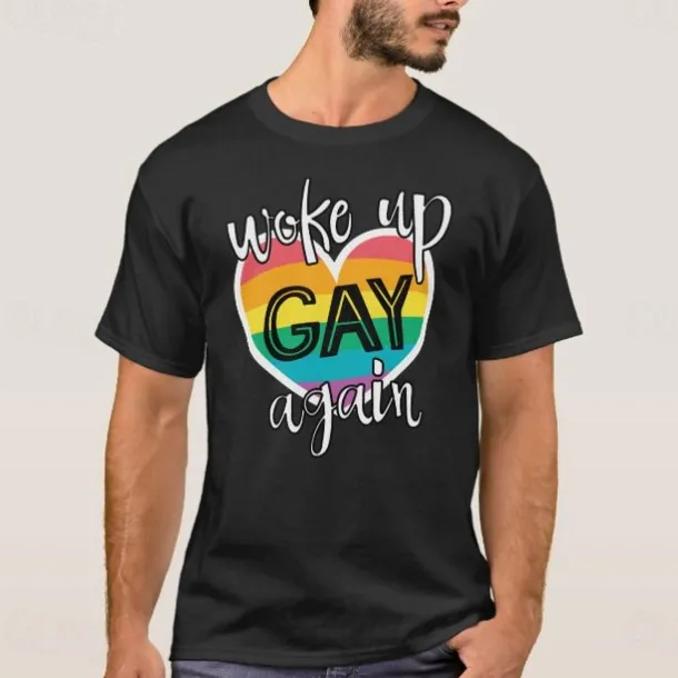 LGBT LGBTQ T-shirt Pride Shirts Rainbow Woke up Gay Again Funny Lesbian Gay For Couple’s Unisex Adults’ Masquerade Hot Stamping Pride Parade Pride Month