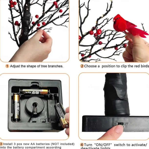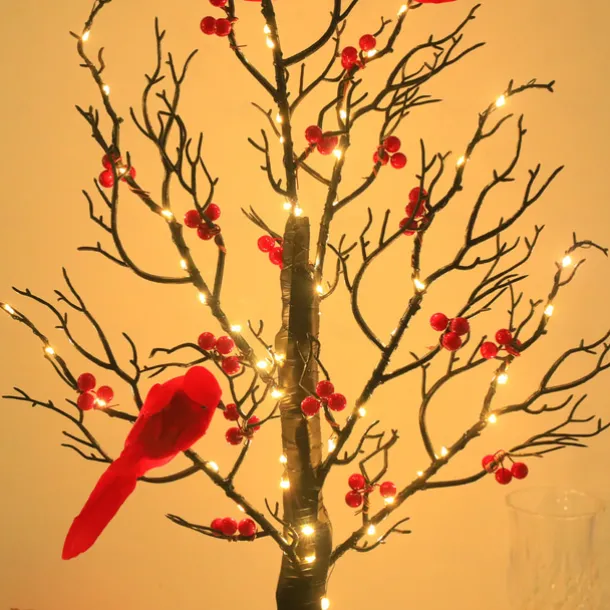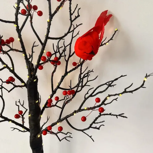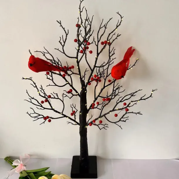 Lighted Birch Tree with Red Berries, Tabletop LED Decor Light for Valentine’s Day Home & Festivals