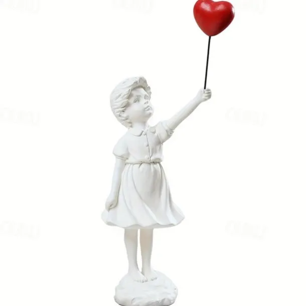 Little Girl Statue With Balloon – Modern Art Sculpture For Home Decor, Resin Figure Sculpture Crafts Ornaments, Living Room TV Cabinet Bookshelf Collectible Decor, Home Decor,Christmas Gift