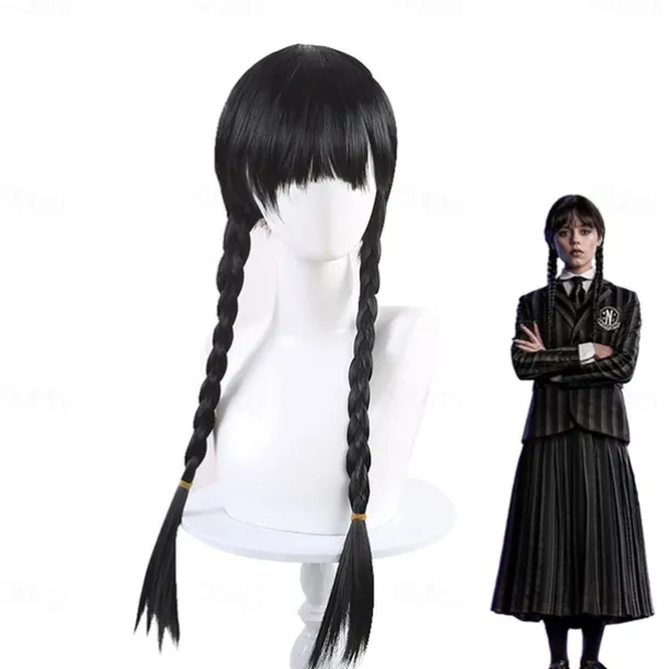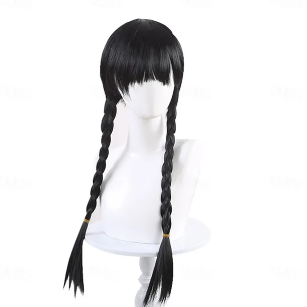 Long Black Straight Braided Wig for Braids Hair for Kids Girl Cosplay Party Halloween Wigs