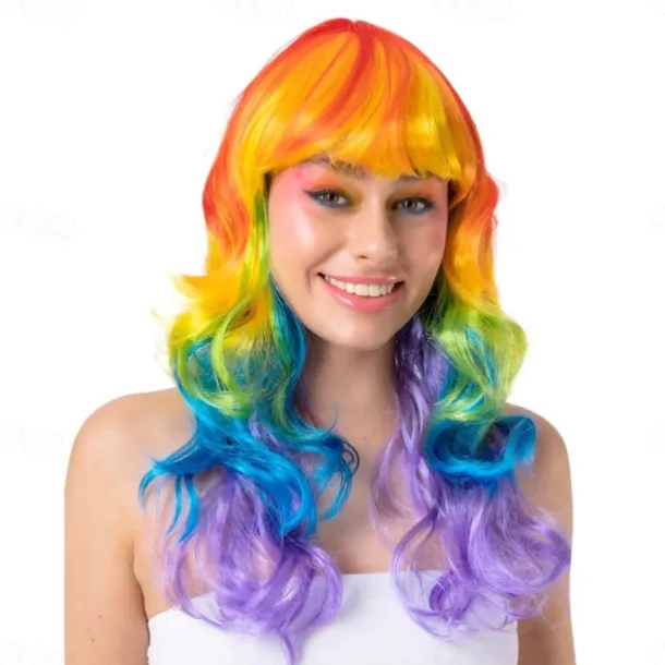 Long Curly Rainbow Wig Fringe Carnival Pride Costume Hair for Women Adults Festival