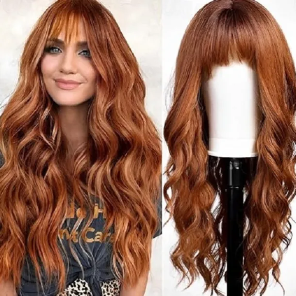 Long Pink Wavy Wigs for Women Wig with Bangs Natural Curly Synthetic Wig for Party Cosplay Daily Use