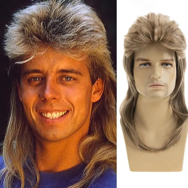 Long Straight Mullet Wig 70s 80s Costumes Fancy Party Cosplay Hair Wig,Ash Blonde For Carvinal Halloween Wigs