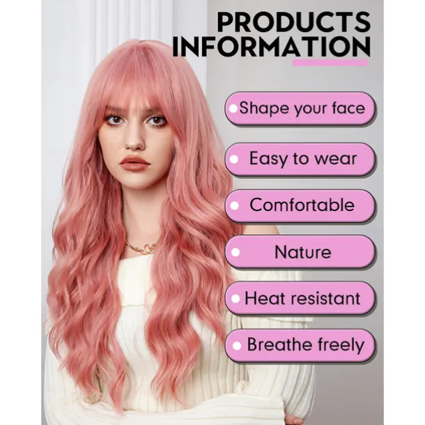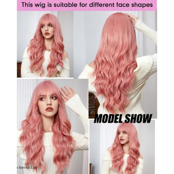 Long Wigs for Women,Synthetic Wavy Hair Wig with Bangs Halloween Cosplay Party Wigs
