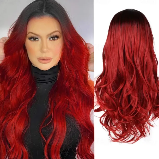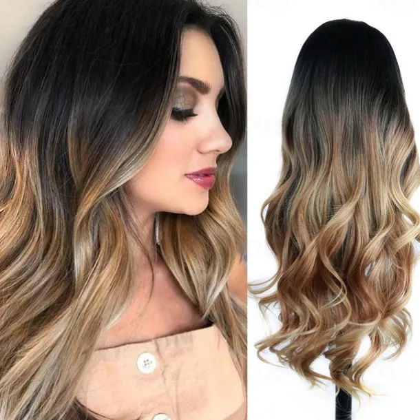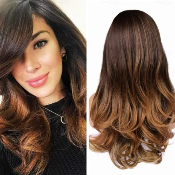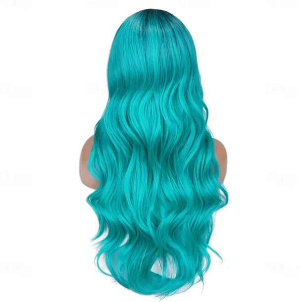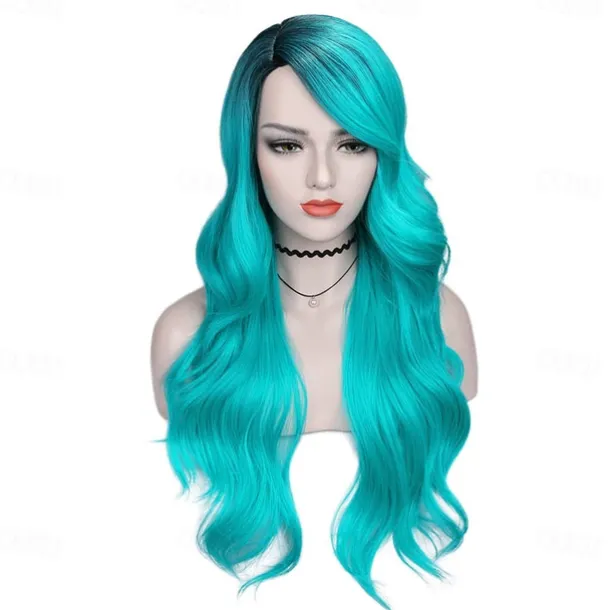 Love Ombre Bluish Green Wigs Long Curly Wavy Teal Blue Side Part Wig 2 Tones Dark Roots Synthetic Daily Party Cosplay Wigs for Women Halloween Wigs