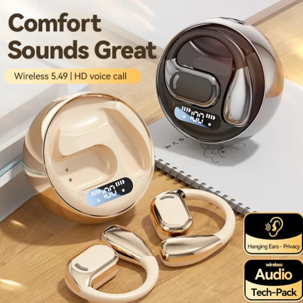 M76 Hands Free Telephone Driving Headset Ear Hook Bluetooth 5.3 Ergonomic Design Stereo Surround sound for Fitness Gym Workout Mobile Phone