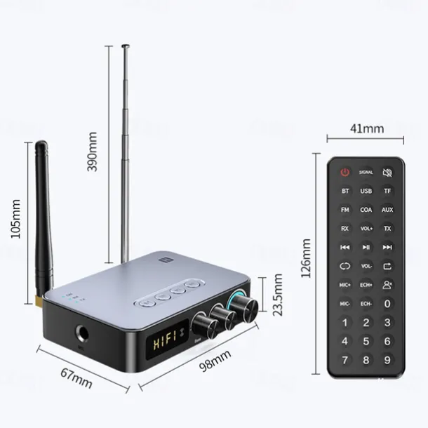 9. IR Remote Control: Control the mode and volume with the included remote (power on not supported).