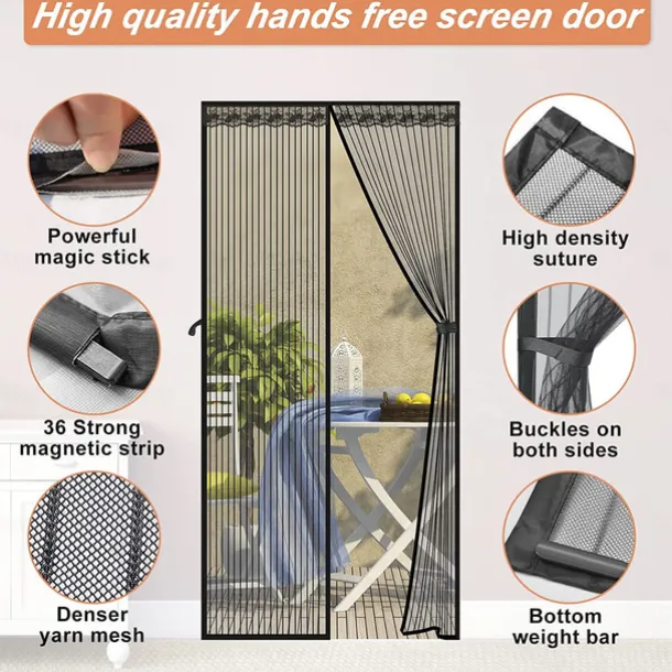 Magnetic Fly Screen Door, 90×210 cm, Insect Protection, Fly Curtain, Magnetic Door Curtains Against Flies Mosquito Velcro Mounting Door Mosquito Net for Balcony Door Patio Door Caravan
