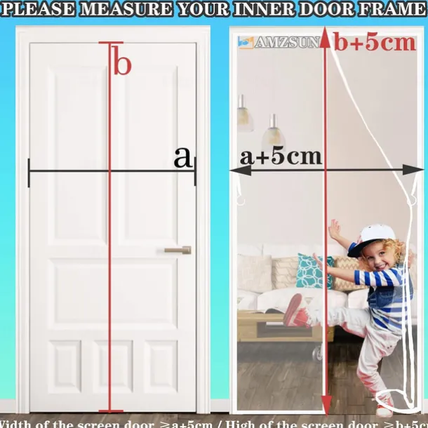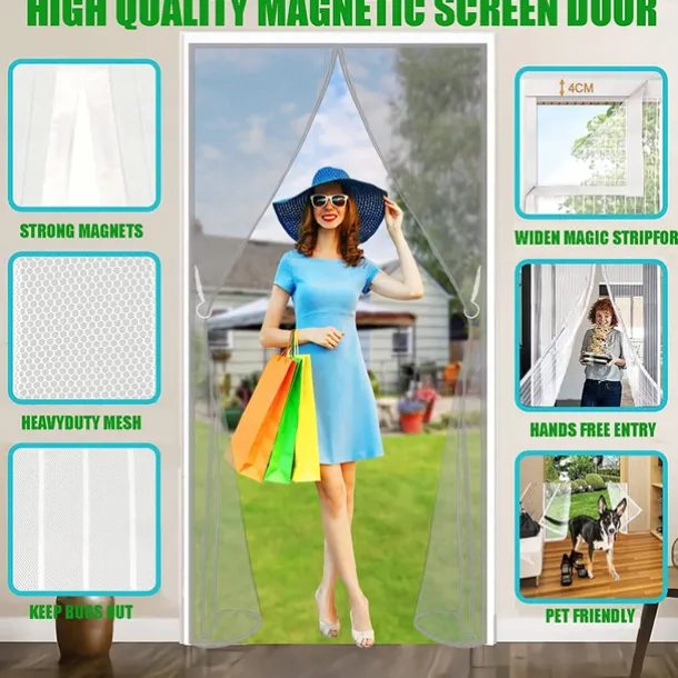 Magnetic Fly Screen Door,Heavy Duty Bug Curtain Full Frame, Keep Bugs Out Lets Fresh Air in Without Drilling