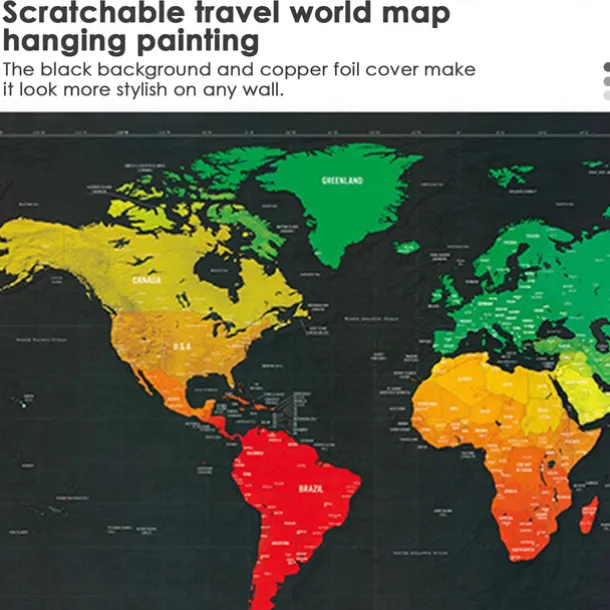 Map World Edition Large Black Gold Style Scratchable Travel Map Hanging Picture Luxury World Map Designed for Travelers