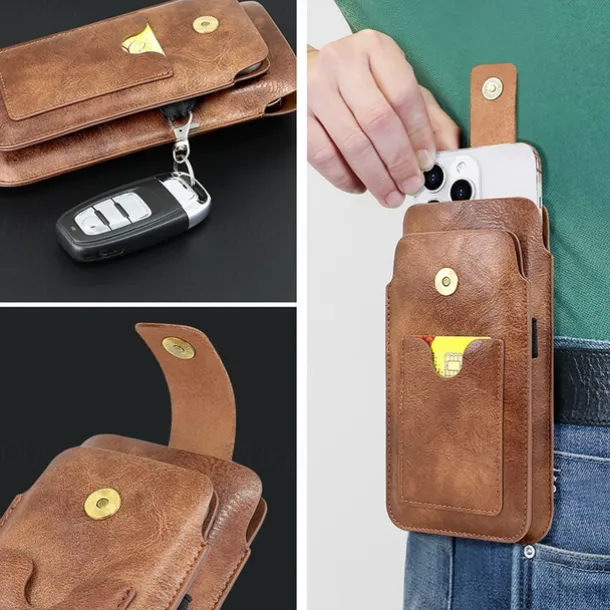 Men Cellphone Loop Holster Case Belt Waist Bag Props PU Leather Purse Phone Wallet Vintage Belt Mobile Phone Protective Sheath