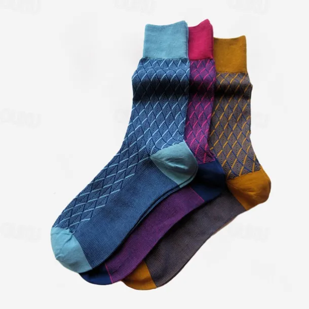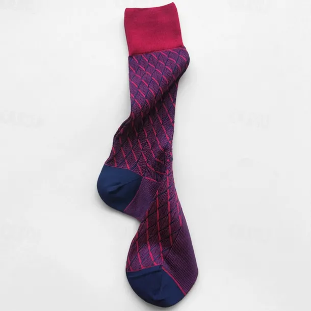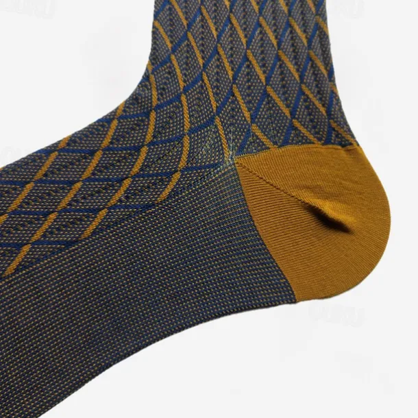 Men’s 1 Pair Socks Yellow Red Color Plaid Plaid Checkered Geometry Formal Wedding Anniversary Thin Spring & Fall Knitwear Elegant