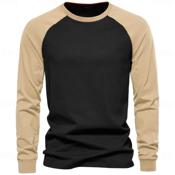 Men’s 100% Cotton T shirt Crew Neck School Training Long Sleeve Color Block Clothing Apparel Warm Vacation Neutral Fashion