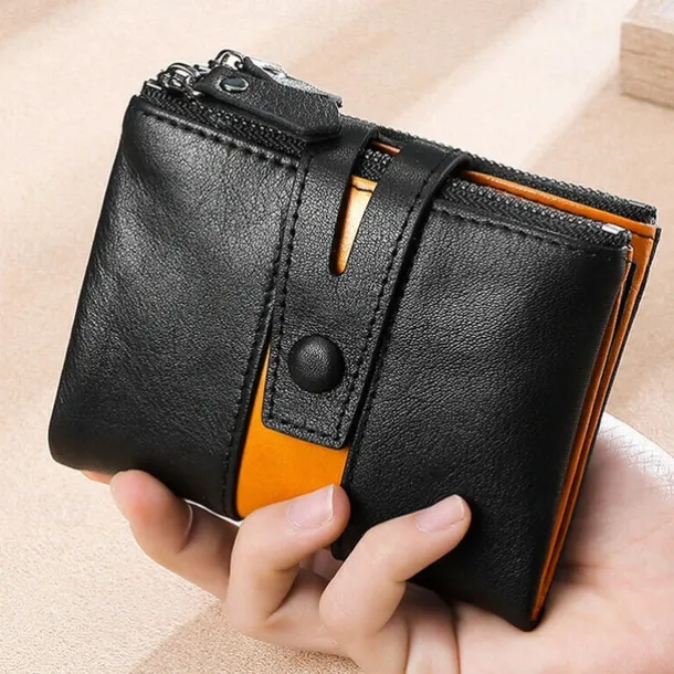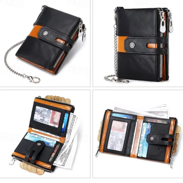 Men’s 100% Cowhide Leather Zipper Wallet RFID Blocking ID Card Holder Coin Purse