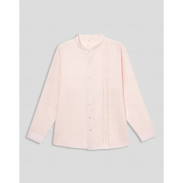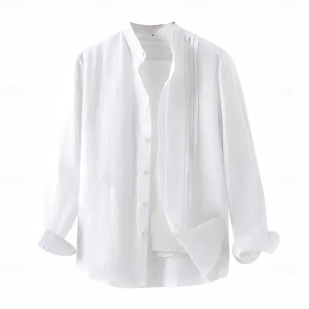 Men’s 100% Linen Shirt Button Up Shirt White Pink Long Sleeve Plain Standing Collar Spring & Fall Outdoor Daily Clothing Apparel Ruched
