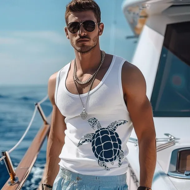 Men’s 100%Cotton 3D Print Tank Top Graphic Fashion Outdoor Casual Vest Top Undershirt Street Casual Daily T shirt White Blue Sleeveless Crew Neck Shirt Spring & Summer Clothing Apparel