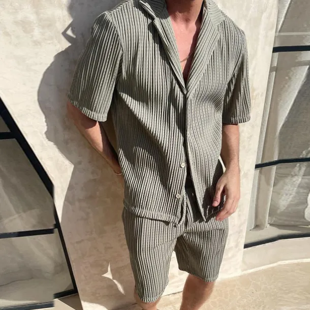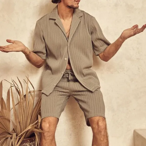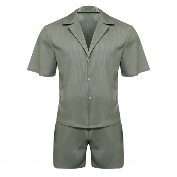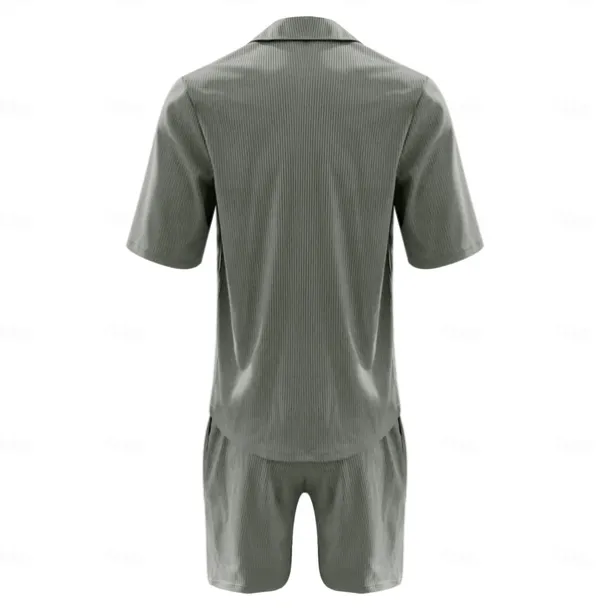 Men’s 2 Piece Shirt Set Summer Set Matching Sets Casual Shirt Corduroy Shirt khaki Gray Short Sleeve Plain Collar Vacation Daily Clothing Apparel Fashion Casual Comfortable