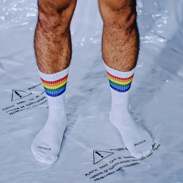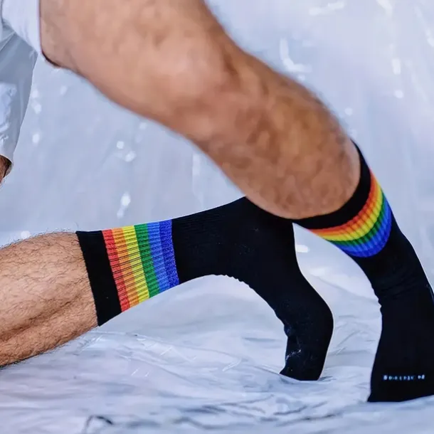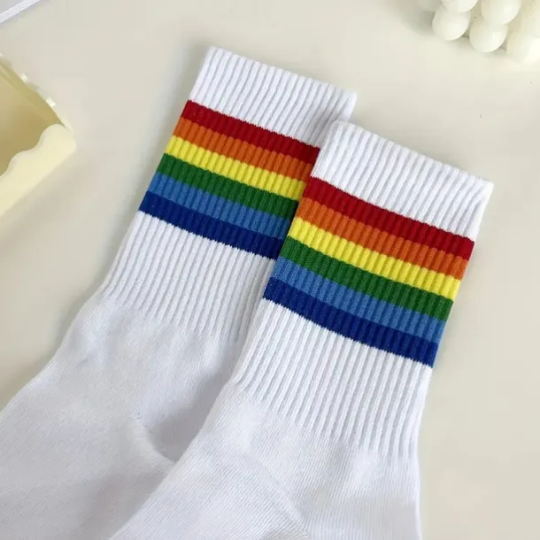 – Add a pop of color to your outfit with our Rainbow patterned socks.