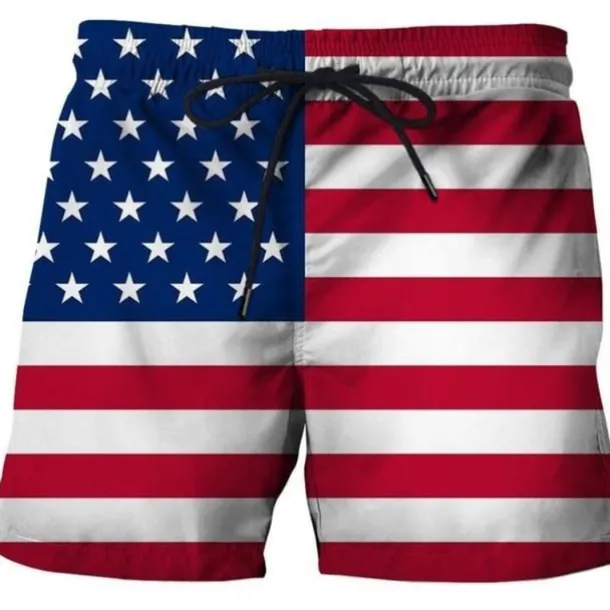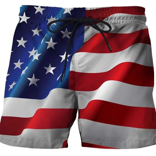 Men’s American Flag Swimming Trunks Board Shorts Swim Shorts Mid Waist Hawaiian Casual Holiday Beach Drawstring with Mesh lining Elastic Waist Designer Clothing Apparel