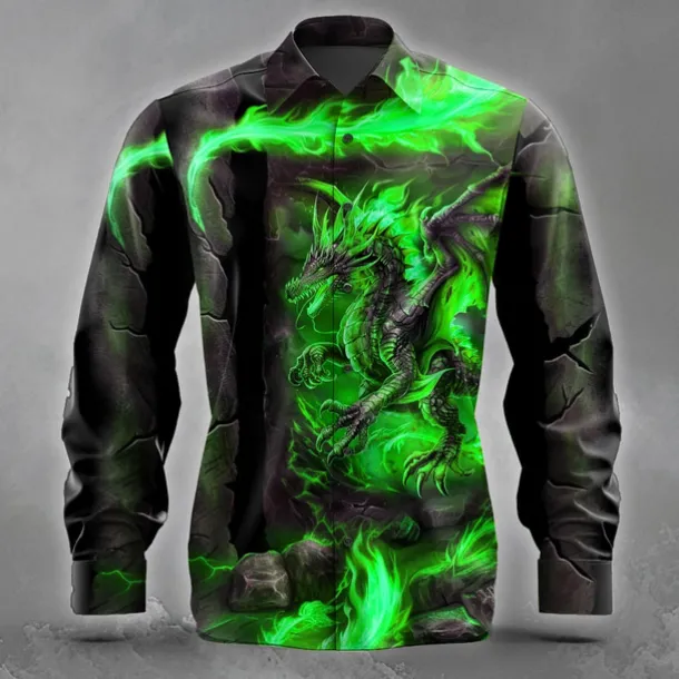 Men’s Animal Dragon Ripped Shirt Button Up Shirt Long Sleeve Dark Punk Gothic Style Holiday Streetwear Summer Spring Turndown 3D Print Collared Shirts Yellow Purple Orange Green