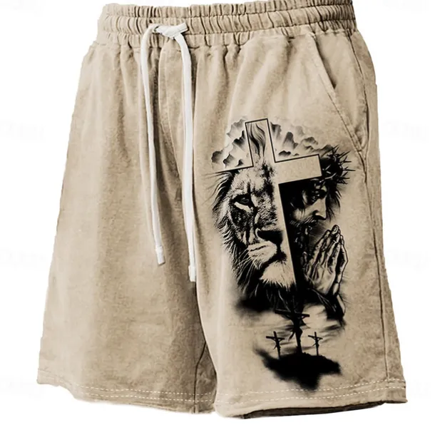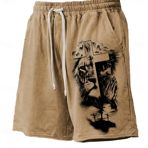 Men’s Animal Lion Cross Board Shorts Swim Shorts Swim Trunks Mid Waist Hawaiian Casual Holiday Beach Drawstring with Mesh lining Elastic Waist Designer Clothing Apparel