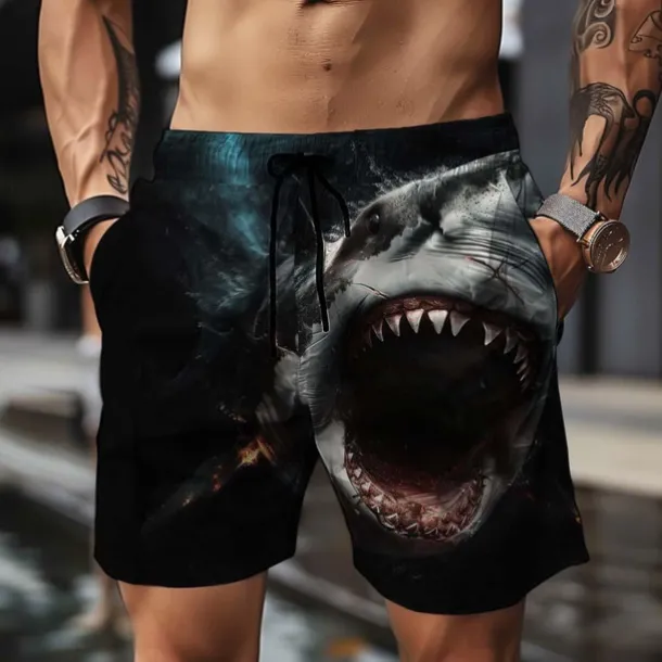 Men’s Animal Shark 3D Print Swim Shorts Board Shorts Swimming Trunks Mid Waist Vacation Sports Streetwear Party Casual Daily Drawstring with Mesh lining Elastic Waist Designer Clothing Apparel