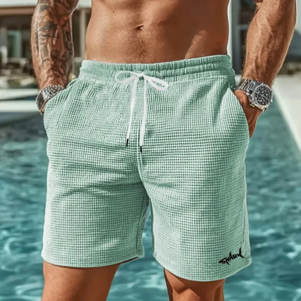 Men’s Animal Shark Sea Creatures Waffle Shorts Sweat Shorts Casual Shorts Mid Waist Fashion Casual Vacation Jogging Workout Elastic Drawstring Waist Shorts with Pockets Designer Clothing Apparel