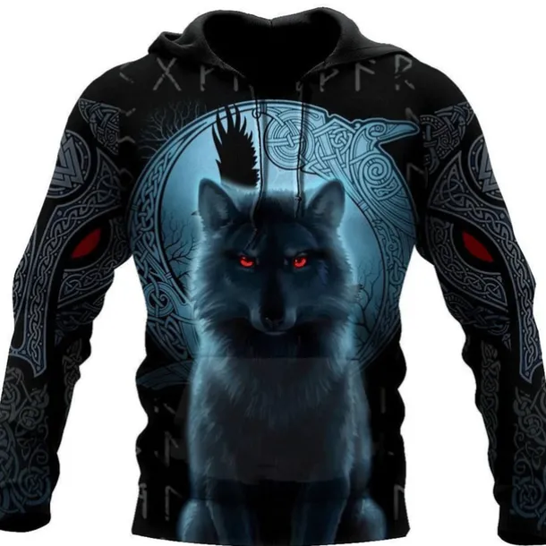 Men’s Animal Wolf Graphic Prints Viking Hoodie Hoodies Sweatshirt Streetwear Designer Long Sleeve Hooded Daily Sports Blue Print Spring & Fall Designer