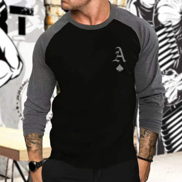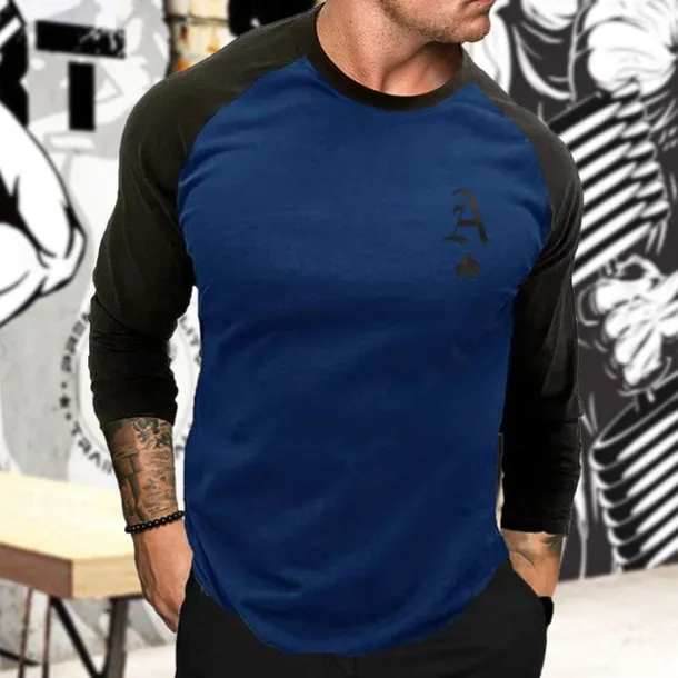 Men’s Athletic Shirt Gym Shirt Fitness Shirt Running Shirt Patchwork Long Sleeve Tee Tshirt Casual Athleisure Fall Breathable Quick Dry Soft Gym Workout Running Walking Sportswear Activewear Graphic