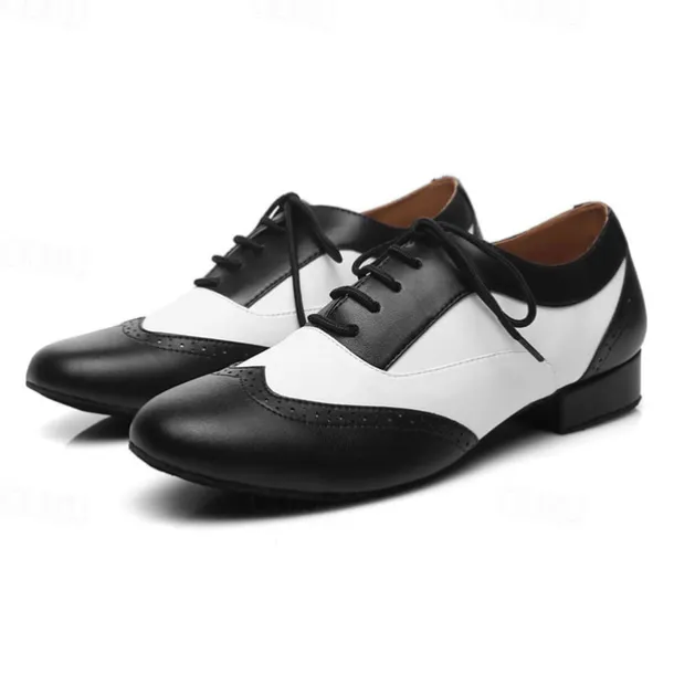 Men’s Black and White Oxford Dance Shoes – Classic Lace-Up Leather Ballroom Shoes for Latin, Tango, and Swing Performances