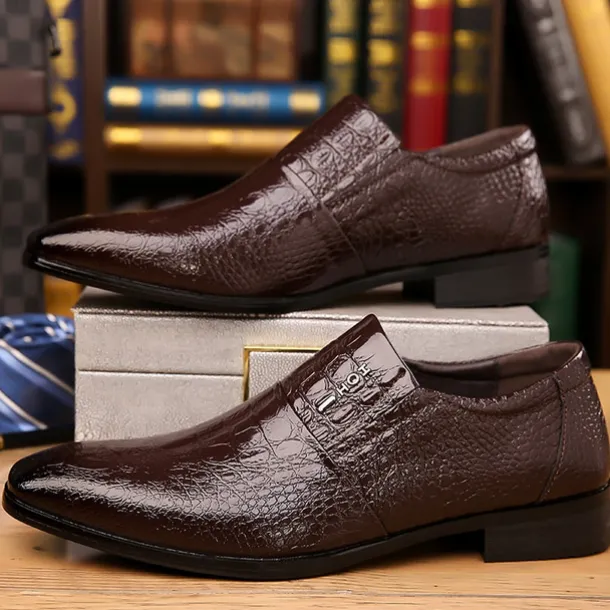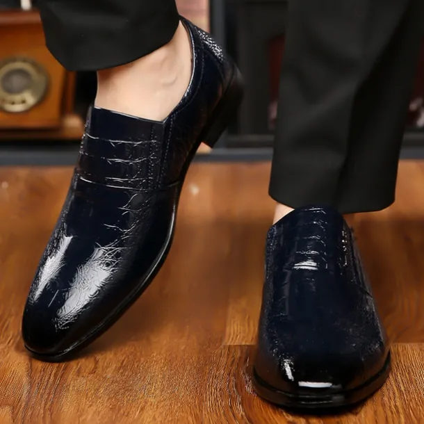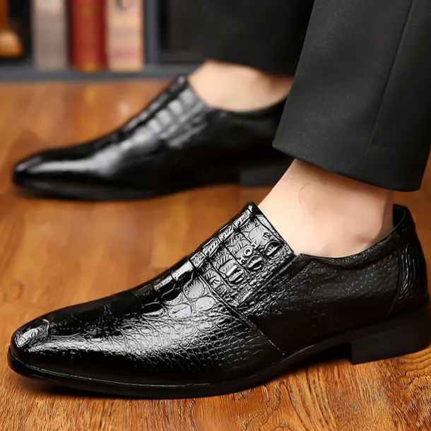 Men’s Black Crocodile Pattern Patent Leather Dress Shoes – Elegant Slip-On Formal Shoes for Weddings, Business, and Evening Events