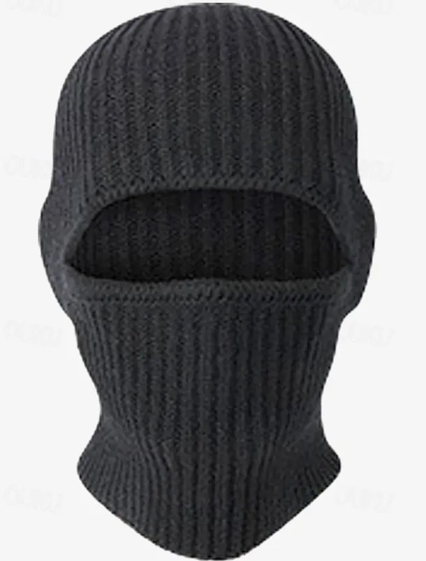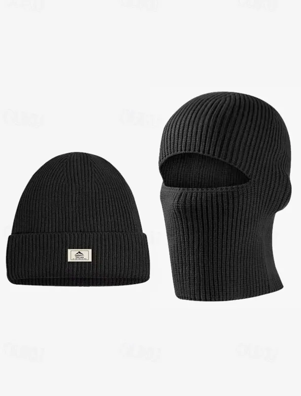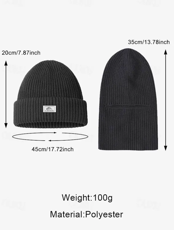 Men’s Black Knitted Beanie with Removable Balaclava – Warm and Versatile Winter Hat for Outdoor Activities and Sports