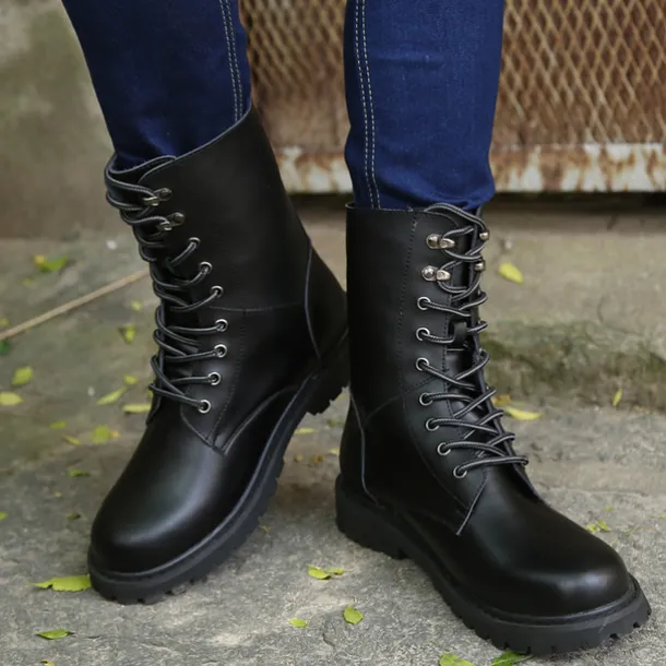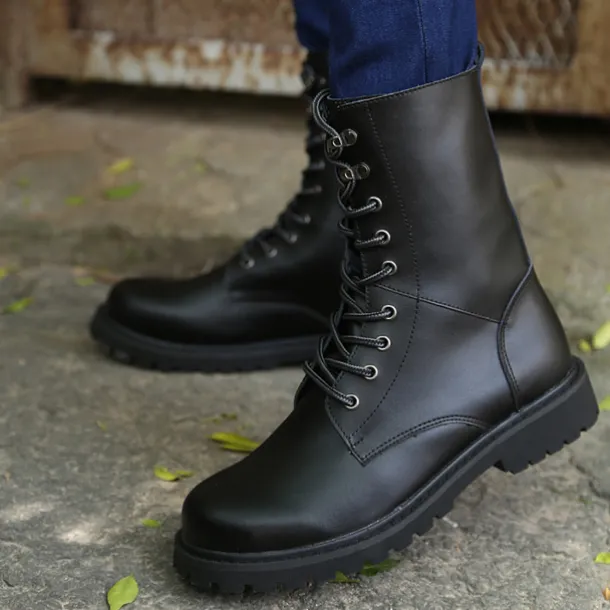 1. Stylish and practical, our Cap Toe Motorcycle Combat Boot offers a sleek and modern look with its lace up closure.