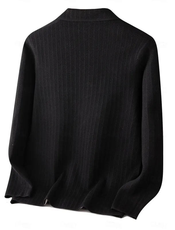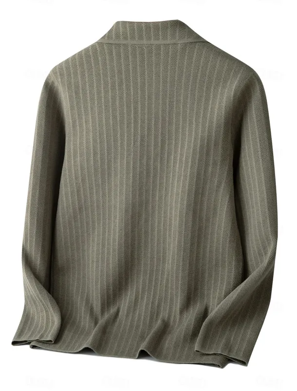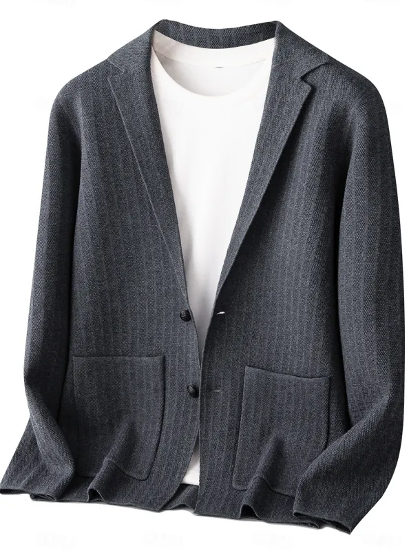 Men’s Blazer Jacket Sweater Coat School Formal Wedding Elegant Warm Spring Fall Wool Nylon Solid Color Jacquard Multiple Pockets Comfy Single Breasted Two-button Blazer Black Dark Grey Army Green