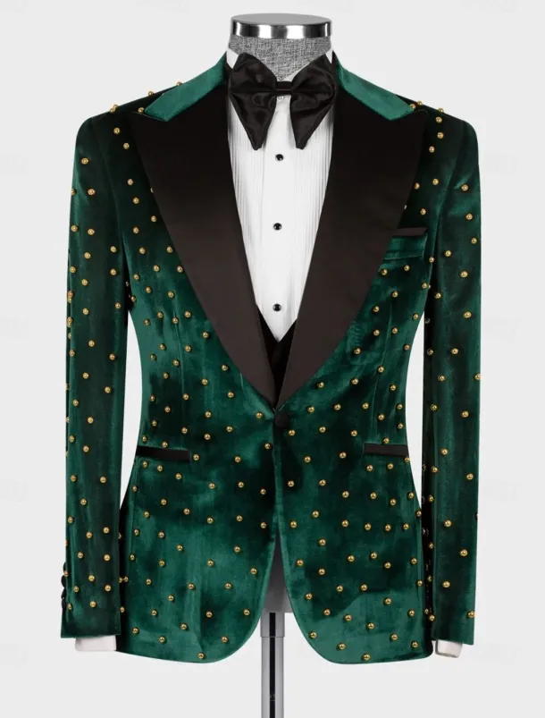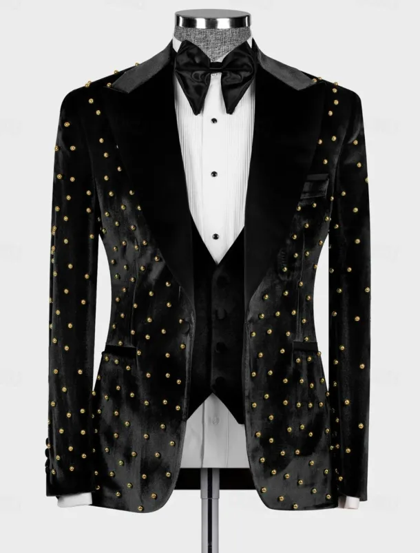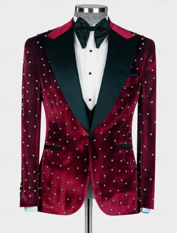 Men’s Blazer Jacket Tuxedo Closure collar Casual Velvet Pattern Black Burgundy Blue Tailored Fit Single Breasted One-button